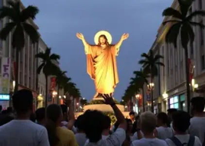 Jovens relembram os passos de Jesus na Via-Sacra na Avenida Paulista.